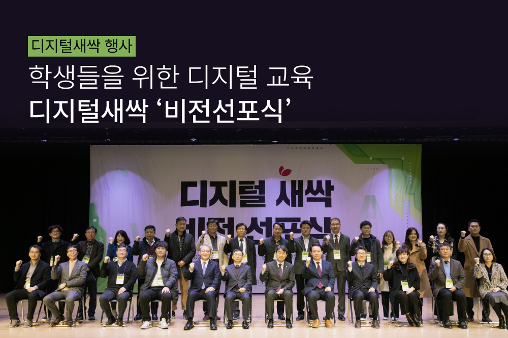 지난 2022년 12월 12일, 오후 2시 '디지털 새(New) 싹(Software · AI Camp)’이라는 명칭의 비전 선포식을 진행하였습니다. 학생들의 디지털 역량 강화를 위해 중요한 교육인 만큼 디지털새싹 비전 선포식이 어떻게 이루어졌는지 다음의 내용을 살펴볼 필요가 있겠지요?