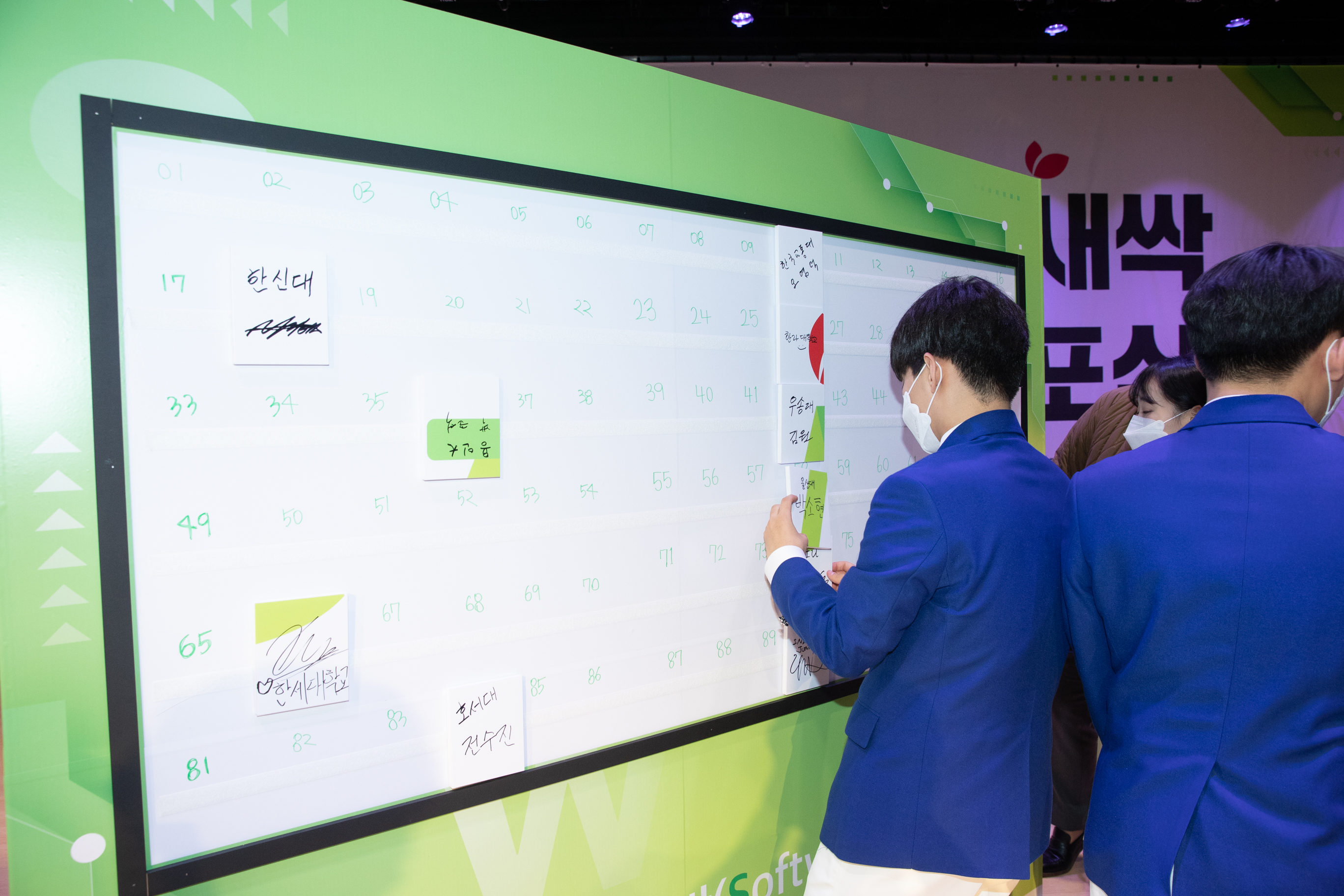 캠프 운영기관으로 선정된 59개 대학교와 16개 기업, 17개 시·도교육청의 관계자분들, 조율래 한국과학창의재단 이사장님과 전진석 충남교육청 부교육감님, 그리고 이주호 사회부총리 겸 교육부장관님이 각자 서명을 한 팻말을 모아 ‘디지털새싹’이라는 통합 BI를 완성한 것으로, 참석자 전원이 함께 참여하여 디지털 대전환 시대를 선도해 나갈 ‘디지털 새싹’을 키운다는 의미 깊은 퍼포먼스였습니다.