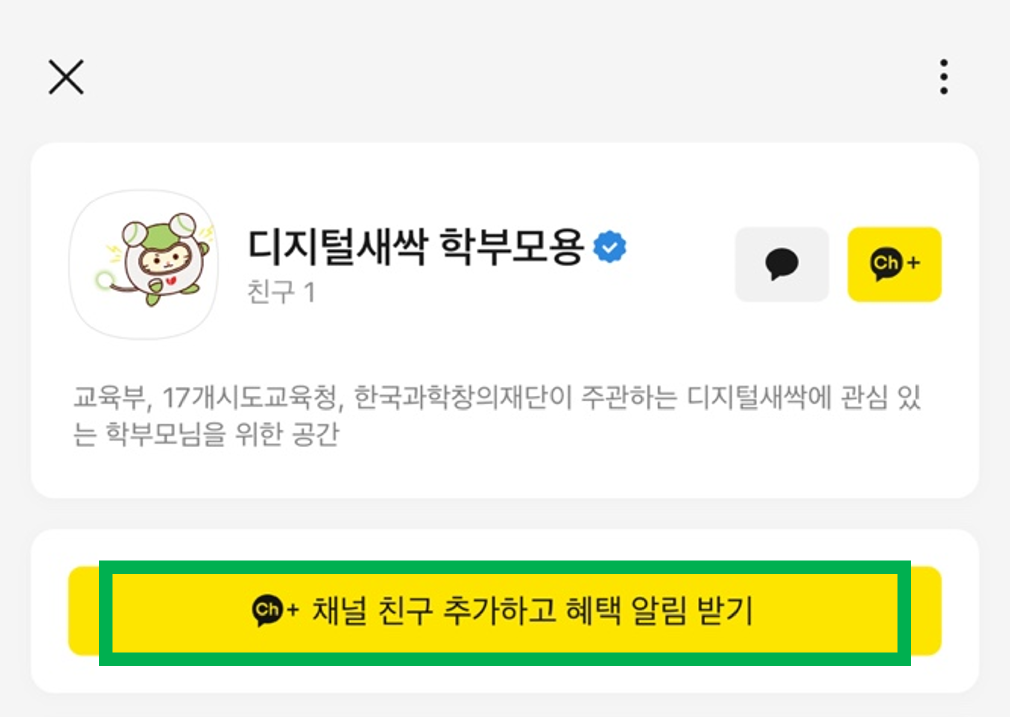 디지털새싹 학부모용 채널 링크로 추가하셔도 됩니다!