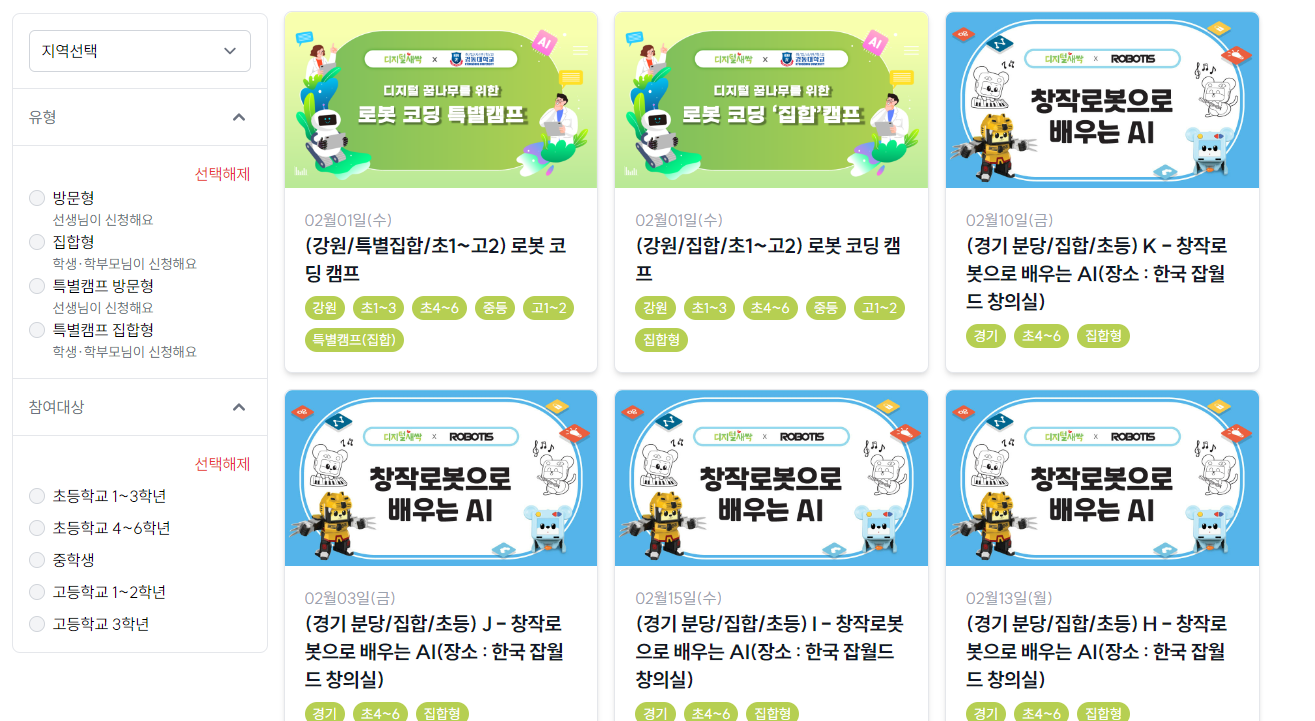 더 많은 캠프를 알아보고 싶으시다면, 디지털새싹 캠프 신청 홈페이지를 통해 확인하세요.