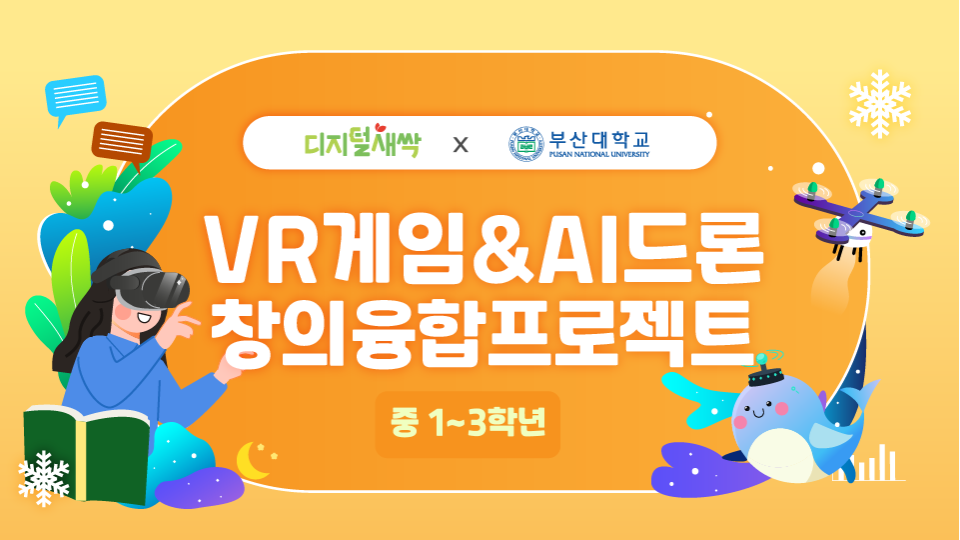 부산대학교에서 운영하는 ’VR게임 창의융합프로젝트‘캠프는 오큘러스 퀘스트 2와 언리얼 엔진으로 VR게임을 설계하고 개발해 보는 캠프입니다. 학생들이 직접 VR게임을 제작해 볼 수 있는 특별한 경험이 될 것으로 기대가 되는데요. 자세한 내용은 링크를 클릭하고 확인하세요.