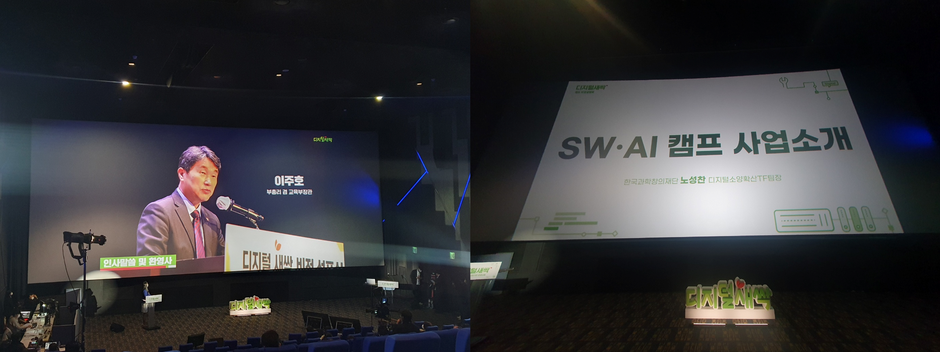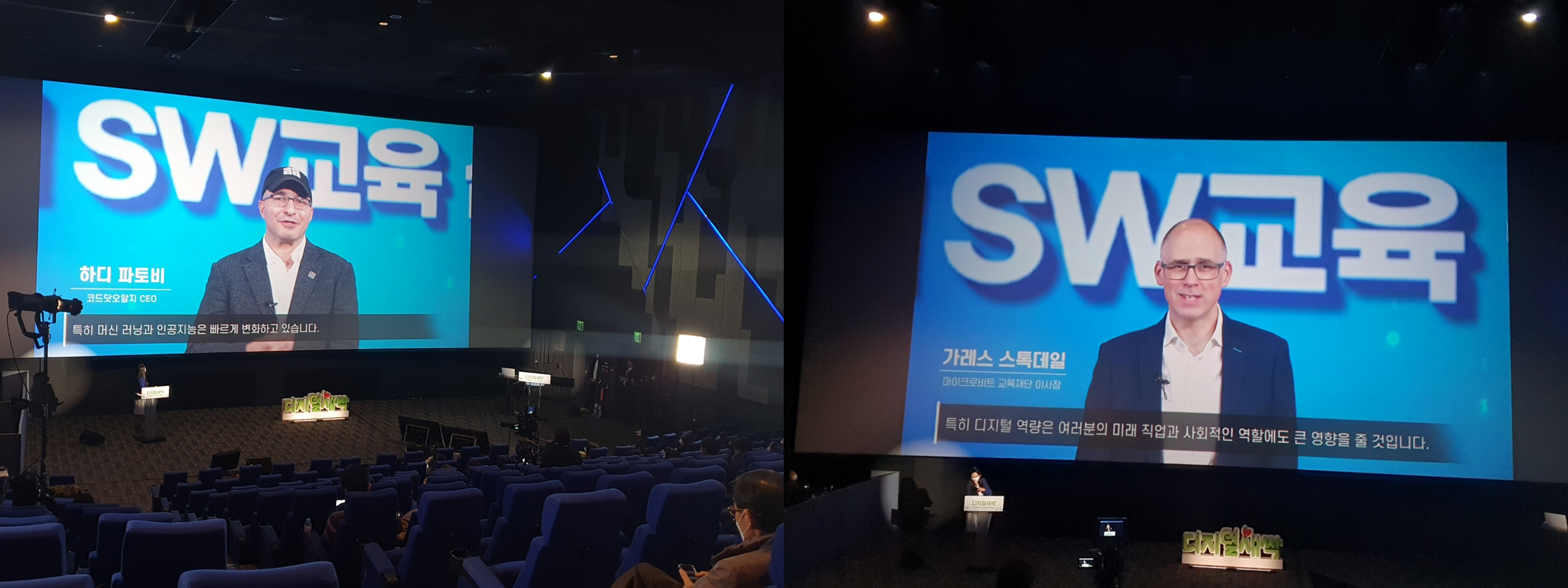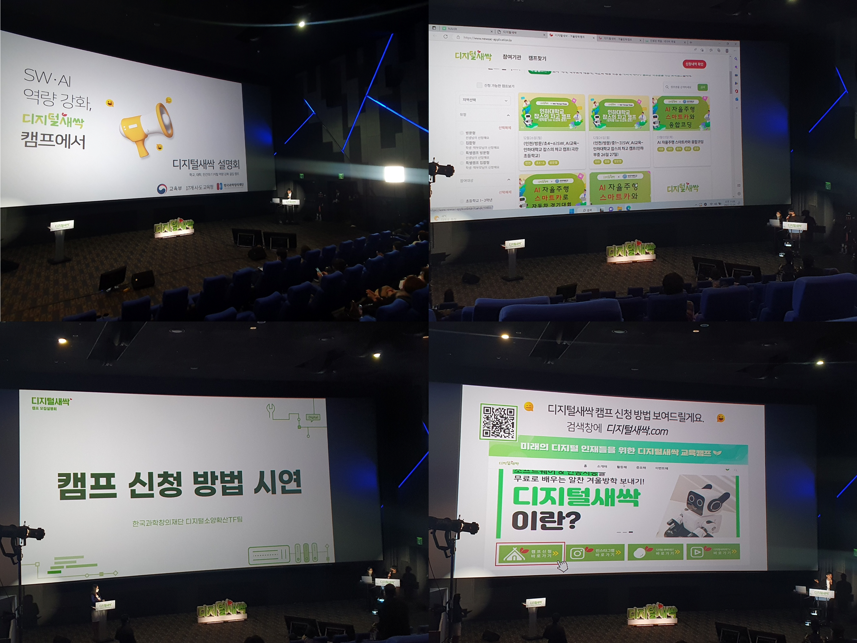 지난, 2022년 12월 26일 월요일 오전, 롯데월드몰 롯데시네마 8층에서 각 지역의 교장 선생님을 모시고 디지털새싹 모집설명회를 진행했었는데요. 유튜브 라이브 송출로 동시 진행되었습니다. 먼저 사회자님의 아름다운 목소리로 디지털 모집설명회를 환영해 주었습니다.