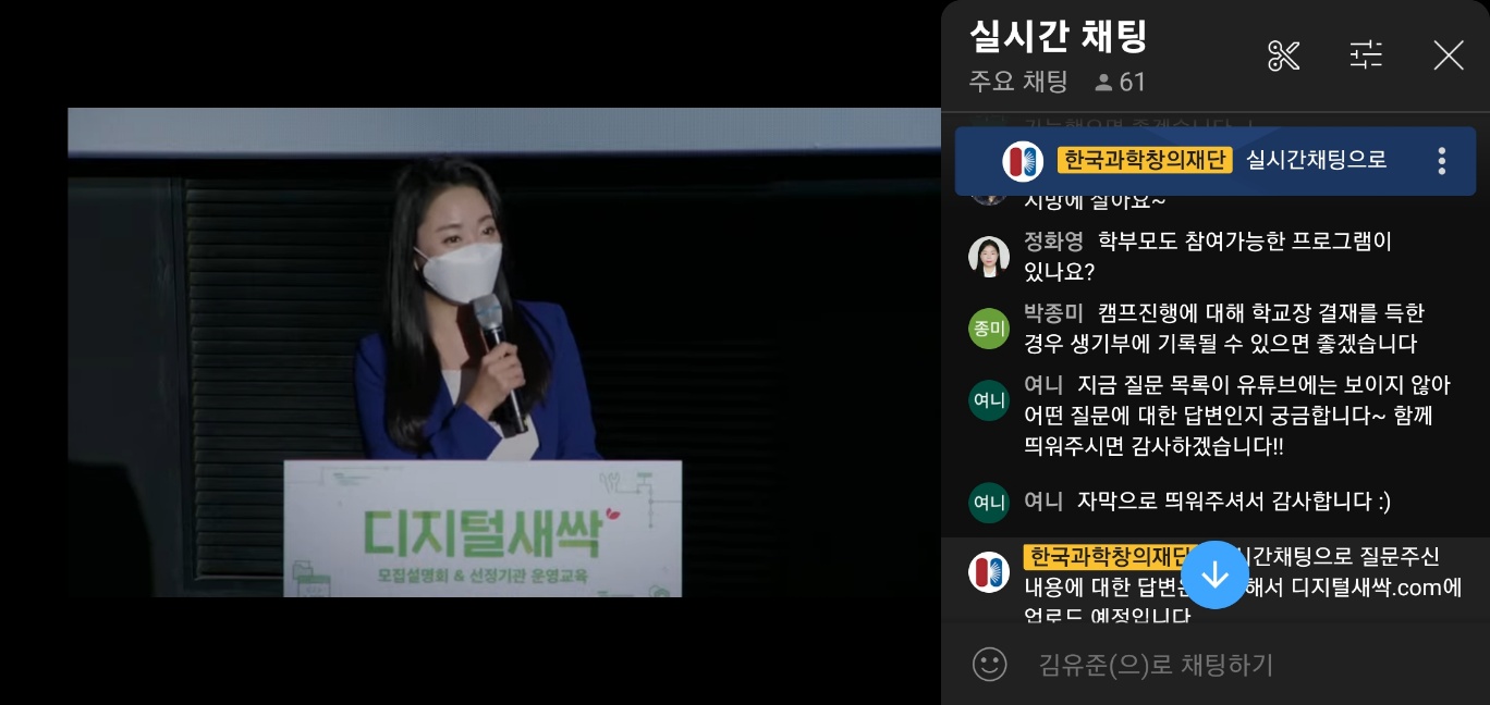 마지막으로 질의응답 시간을 가졌는데요. 궁금하신 점을 모두 받아서 FAQ로 만들어서 공지해 드릴 예정이라고 하니 더욱 안심할 수 있는 거 같아요. 그럼 다음 디지털 캠프 정보로 또 찾아뵐게요! 이상 새싹발굴단 무럭이었습니다. 감사합니다.
