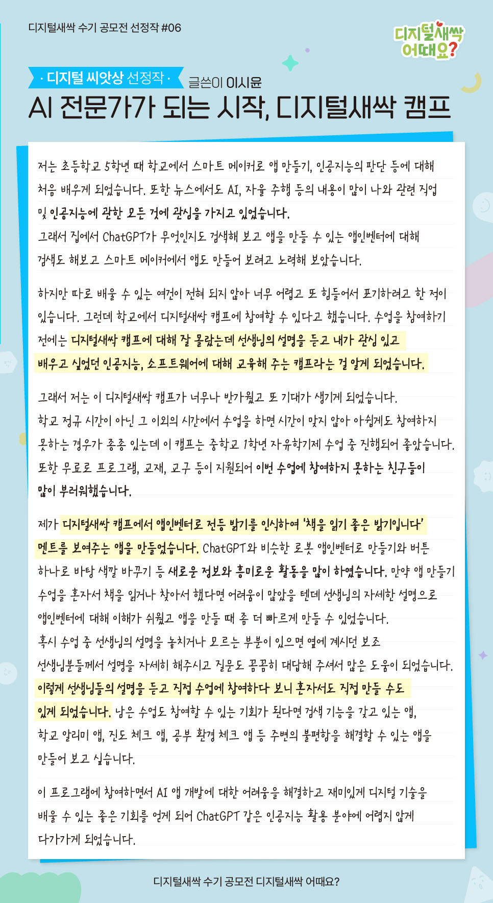 디지털씨앗상 수상작 - ‘AI 전문가가 되는 시작, 디지털새싹 캠프’