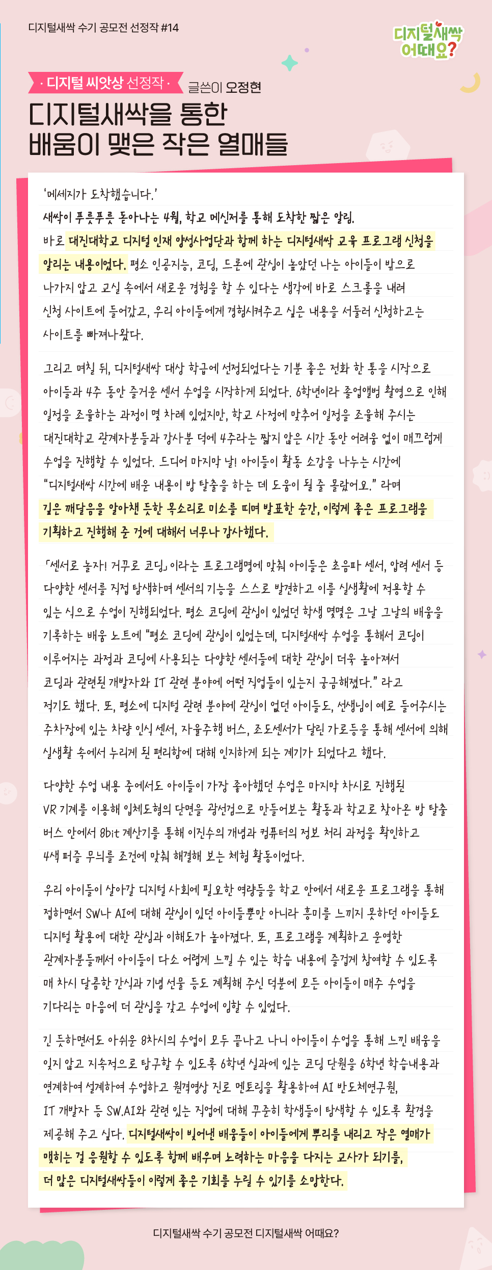 [디지털새싹 수기공모전 '디지털새싹 어때요?'] 디지털씨앗상 수상작 – 디지털새싹을 통한 배움이 맺은 작은 열매들