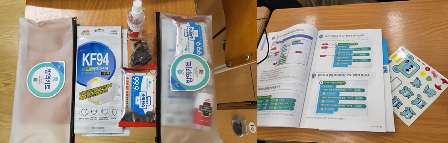 그 외에도 아이들에게 디지털새싹이 귀엽게 적혀있는 티셔츠와 캠프에 관련한 교재와 코로나 시대의 방역을 고려하여 방역 키트까지 제공해주었습니다!