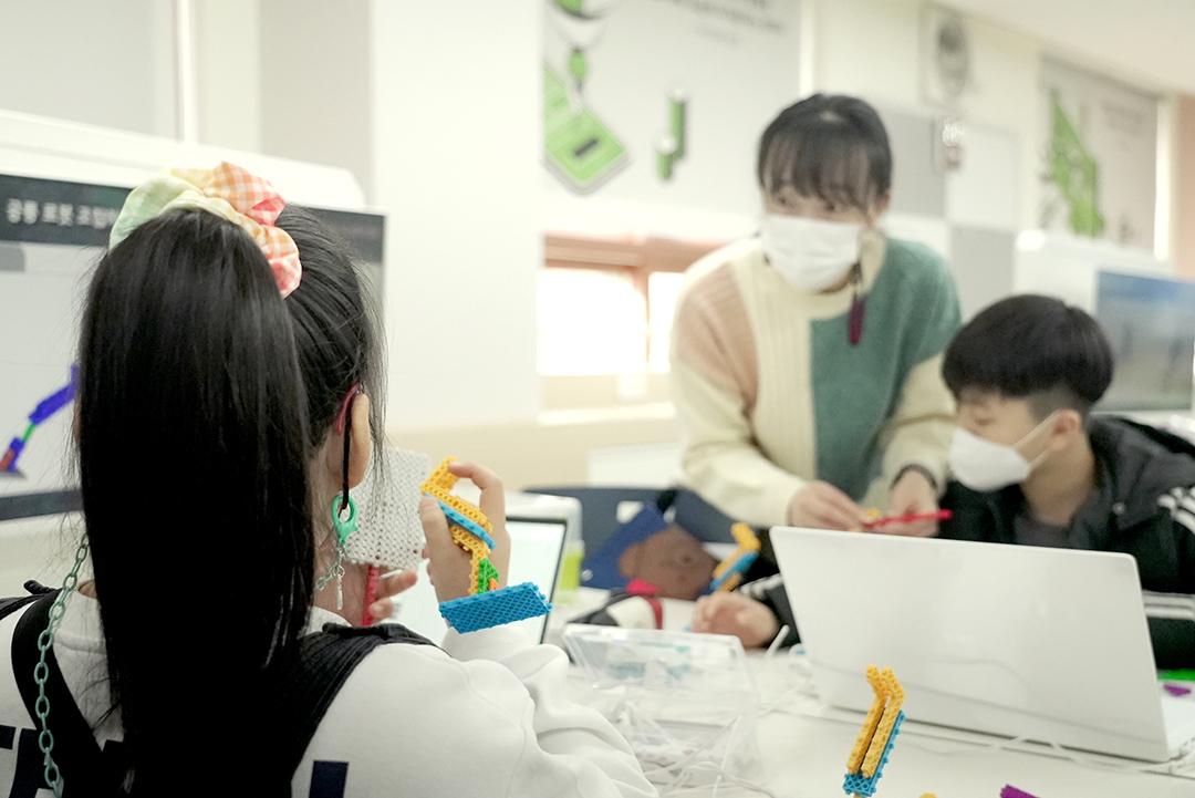 (최민서) 이전에도 집에서 혼자 재미로 움직이는 로봇 만들기를 해본 적이 있는데, 혼자서 할 때는 복잡하고, 이해도 안 되고, 막히는 부분들이 많았거든요. 그런데 오늘은 선생님들께서 자세히 알려주시니까 쉽게 배울 수 있었던 것 같아요.