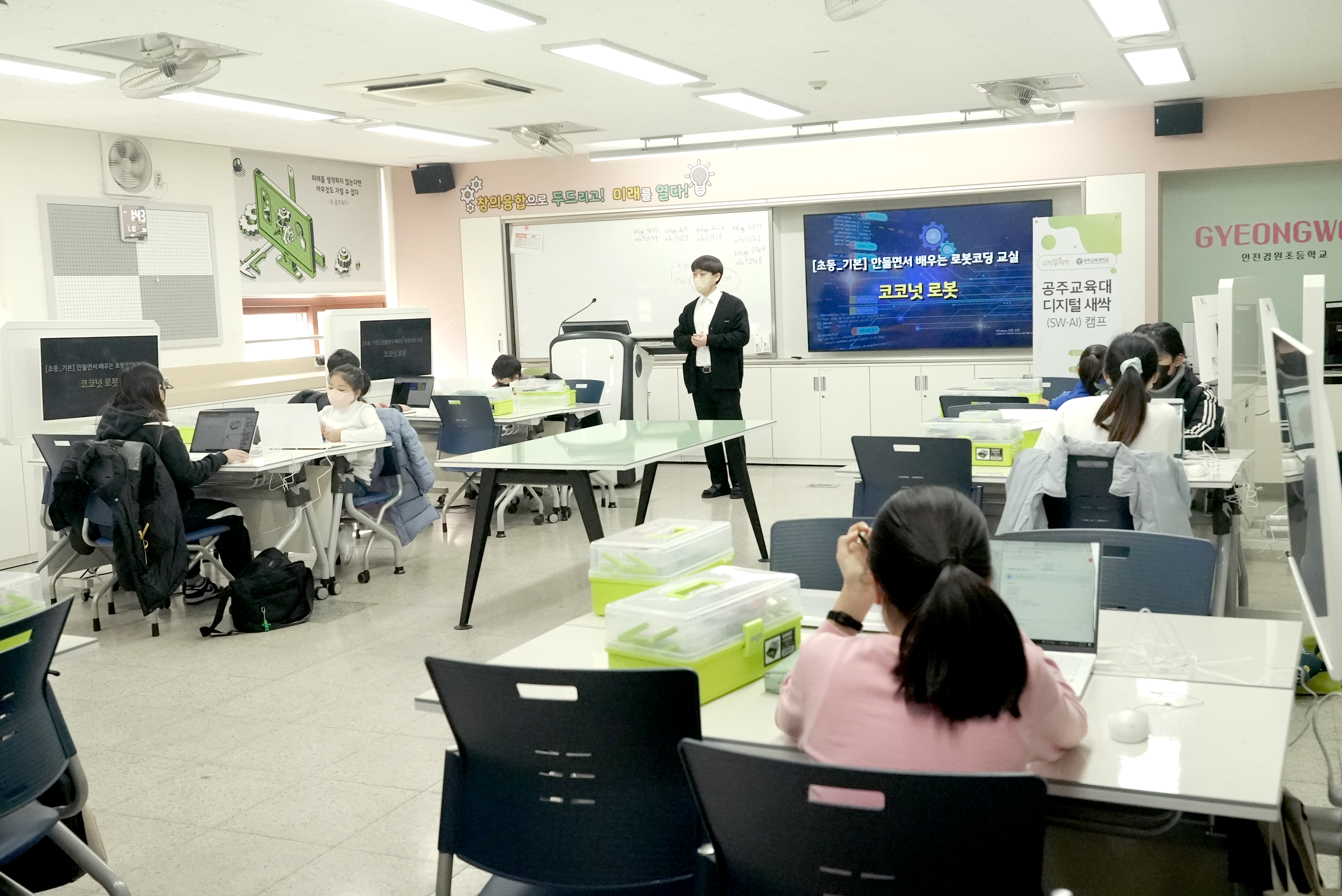 디지털새싹 캠프이 소프트웨어·인공지능 관련 교육 운영의 제약 사항을 해소해 주는 역할을 할 것이라는 경원초등학교 선생님의 인터뷰입니다.